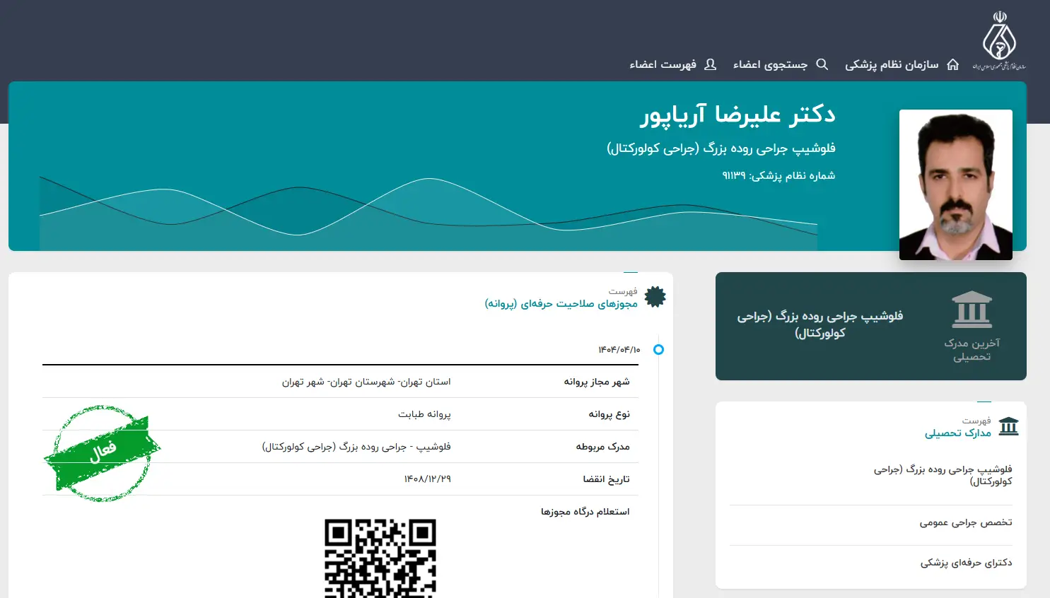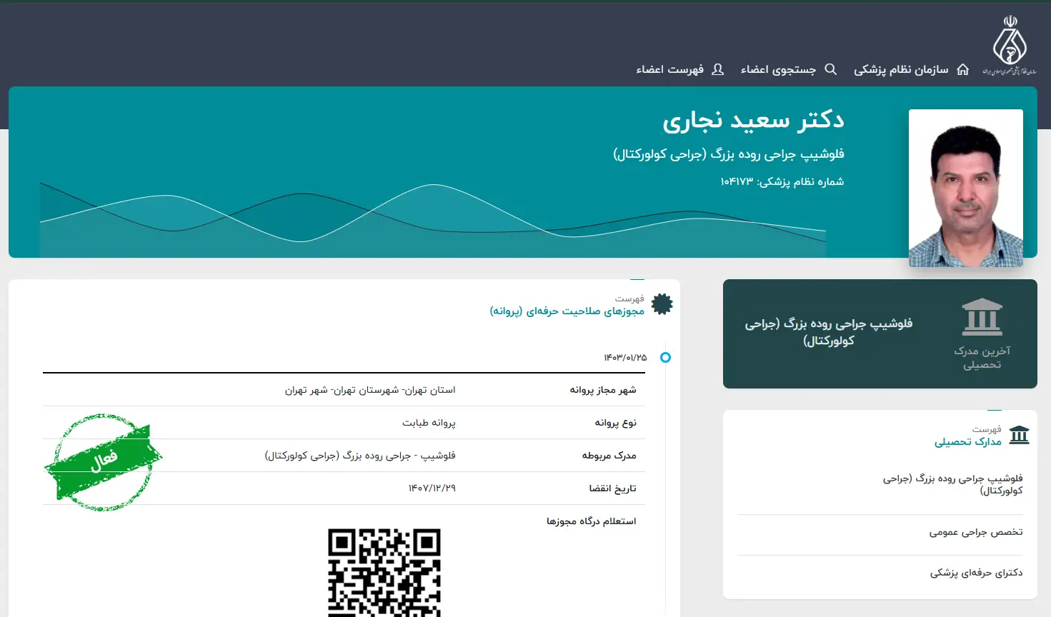 7: دارا بودن مدارک بین المللی تخصصی در رابطه با بیماری ناحیه مقعد